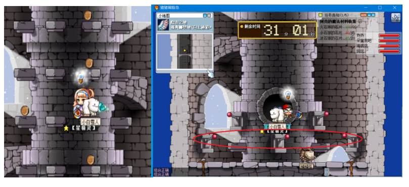 步道:这关一共有30只精灵,打败所有精灵获得30个碎片交给队长,精灵死后会变成幽灵形态,幽灵不爆碎片可以不用管。中间塔有6个入口,分别对应6个平台。