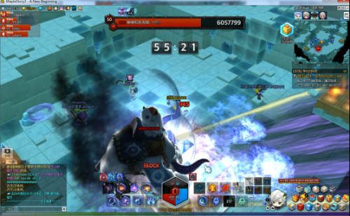 当BOSS血量小于50W的时候,它会跑去上方墙角站桩式往地面抛冰锥。这个冰锥伤害很高在这里配合‘闪烁’来走位躲避。一旦被冰锥打到1000血左右的伤害注意哈!