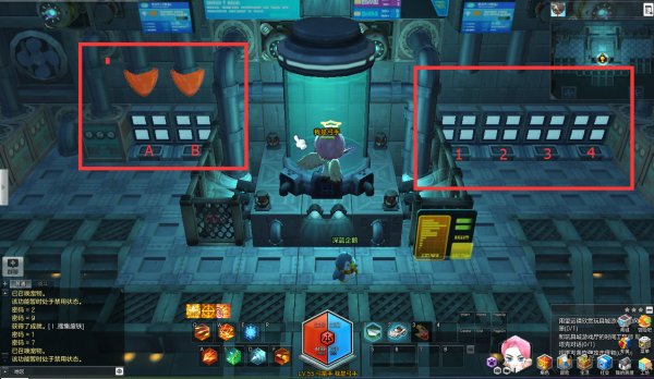进入二层需要启动左右两边的装置来挑战副本,这里也是很多新手玩家容易犯错的地方。