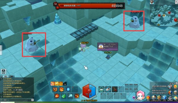 来到副本二层玩家直接面对副本BOSS‘雪人’。一开始玩家都是在云端上,直接往下跳就好了,下面是河流,不会受伤。利用攀爬技能爬到上面平台就是BOSS了。这图不用怕死,死之后是在该图的云端处复活。