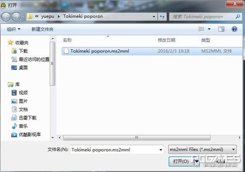 4、这时候会出现弹窗,找到乐谱地址,导入下载好的ms2mml文件即可(这里查看可以下载)。